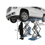 The Atlas SLP-9K is a commercial-grade, full-rise scissor lift designed for shops with limited ceiling height while still providing a powerful lifting capacity of 9,000 lbs. With a maximum lifting height of 78 inches (6’6″), this lift is perfect for servicing SUVs, pickup trucks, and other vehicles in professional garages and workshops.