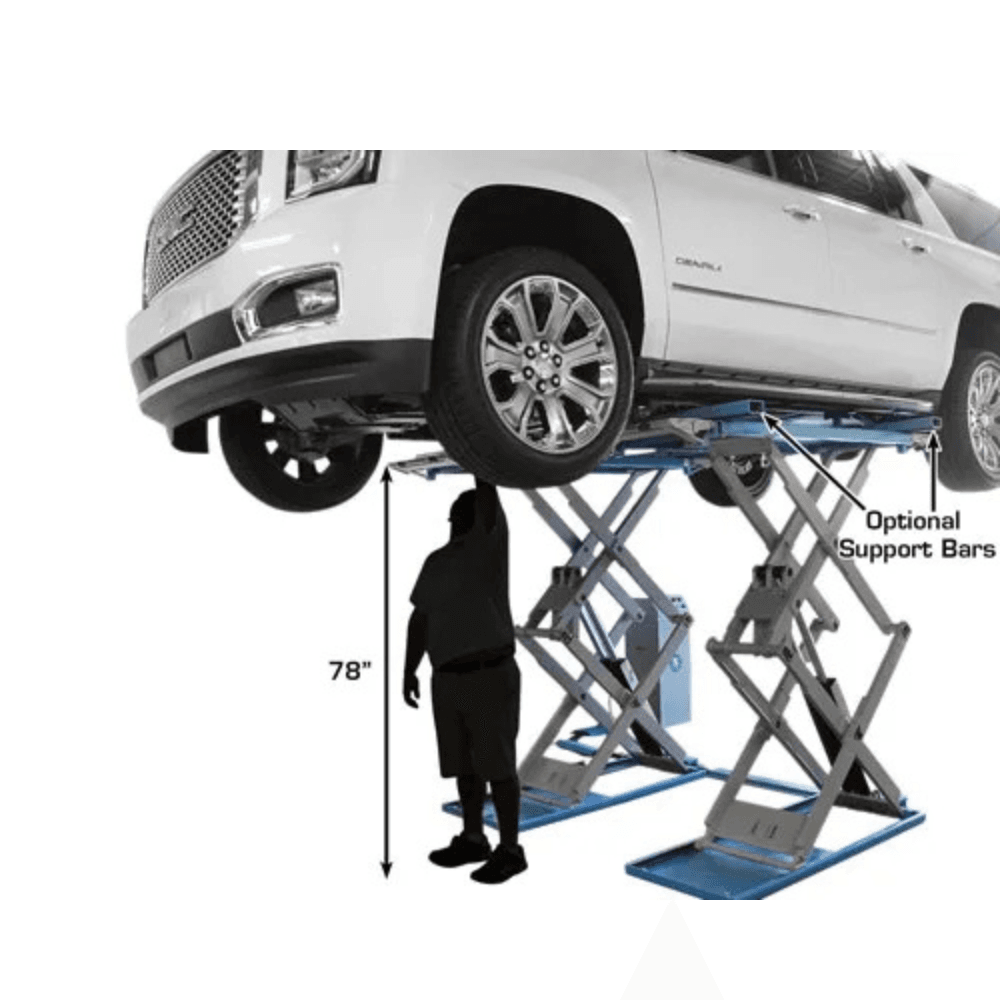 • Full-Rise Scissor Lift (78” Max Height) – Provides ample clearance for undercar repairs, wheel service, and maintenance.