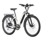 suspension fork, cushioned step-through frame, and 27.5″ x 2.1″ tires for a plush ride across varied terrain. - Commuter-Ready