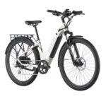 - Comfort-Forward Design: Features a suspension fork, cushioned step-through frame, and 27.5″ x 2.1″ tires for a plush ride across varied terrain.