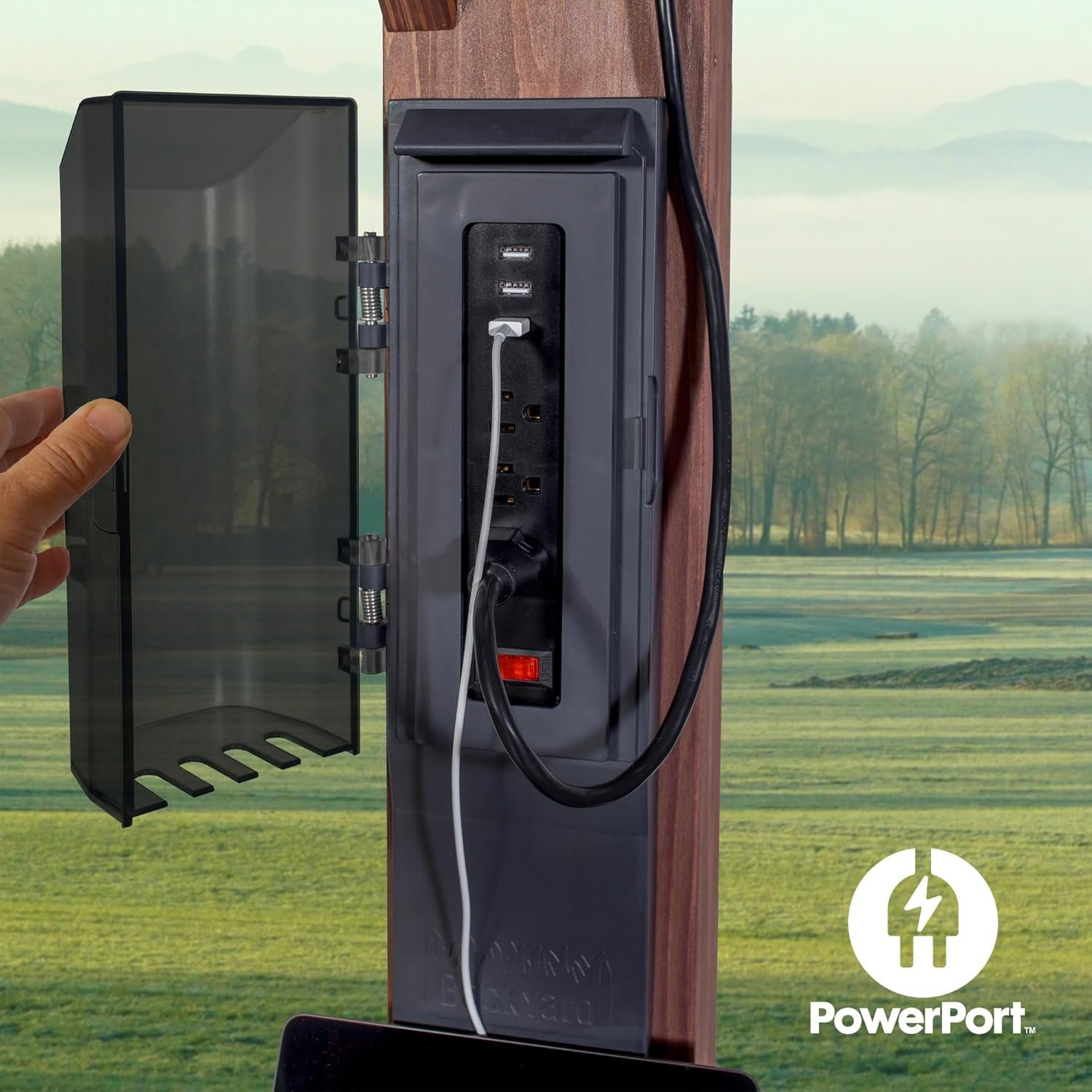 - POWERED UP: Exclusive removable PowerPort features 3 electrical outlets and 3 USB ports that is transferable to any post on the structure. PowerPort can be used for charging devices, lights and more. PowerPort requires a power source to be functional (not included)