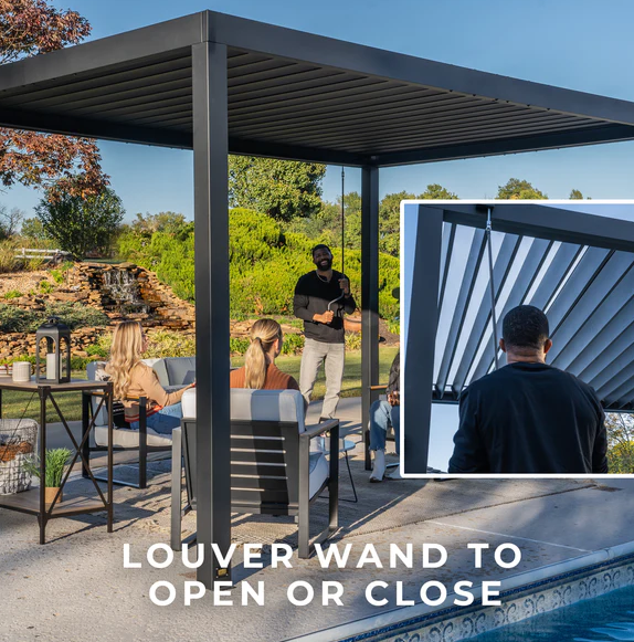 - Easy operation: louver wand makes opening and closing the louvered roof simple
