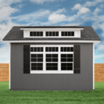 The Handy Home Windemere 10×12 Storage Shed is a spacious and stylish outdoor structure, designed for storage, workshops, or creative studios. Featuring extended architectural roof overhangs and a dormer, it blends functionality with contemporary aesthetics, making it a standout addition to any backyard.