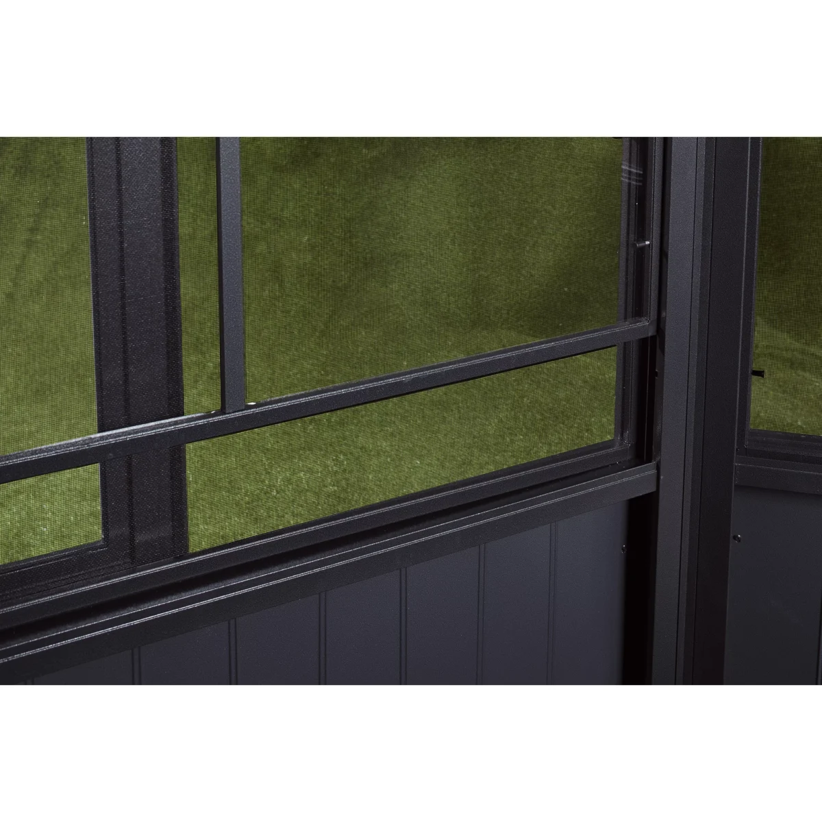Its sleek dark grey frame and classic design add value to your property while offering year-round use and comfort. Whether enjoying summer breezes or sheltering from the rain, this solarium creates a luxurious outdoor living area you’ll love.