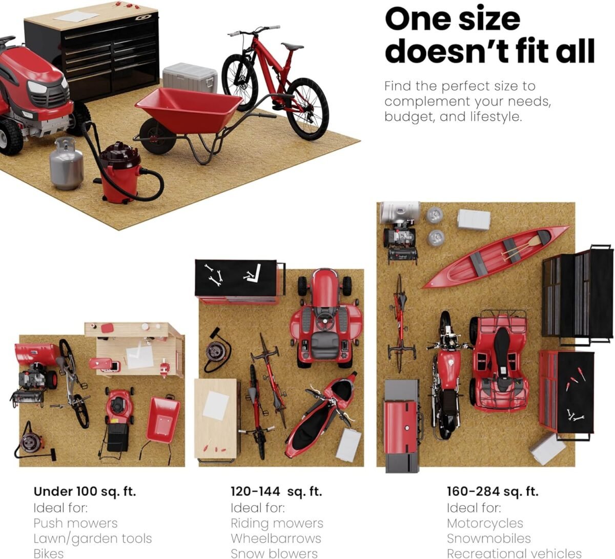 - ✔ Spacious 10×12 ft. layout with tall sidewalls for vertical storage